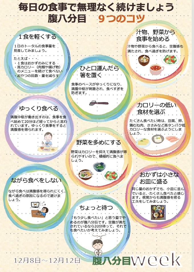 腹八分目にする9つのコツをそれぞれが意識しながら、